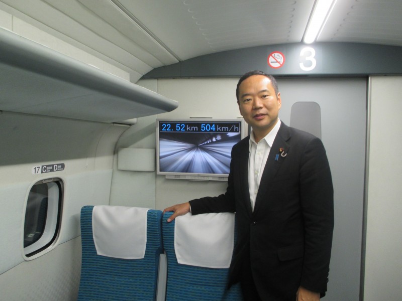 田中国土交通副大臣とともに、山梨リニア実験線において、走行試験の立会を行わせていただき、505km/hを体感させていただきました。