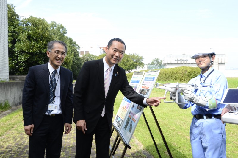 新たな取組として、無人航空機(UAV)、いわゆるドローンによる測量について、デモンストレーションを行っていただきました。