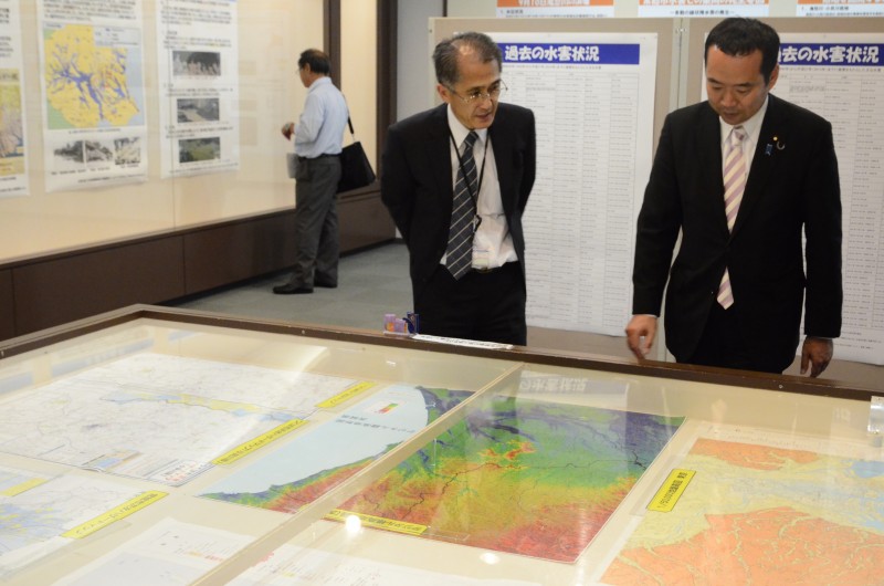 守る(頻発する災害への対応)取組として、土地条件図、デジタル標高地形図、過去の地図・空中写真(戦前~)との比較による地形の確認など、ハザードマップ作成、防災に役立つ地図の作成について説明をいただくとともに、平成27年関東・東北豪雨や平成28年熊本地震など、防災対策としての、空中写真撮影、緊急測量などによる被災状況の把握、応急活動に必要な情報収集と速やかな提供について説明をいただきました。