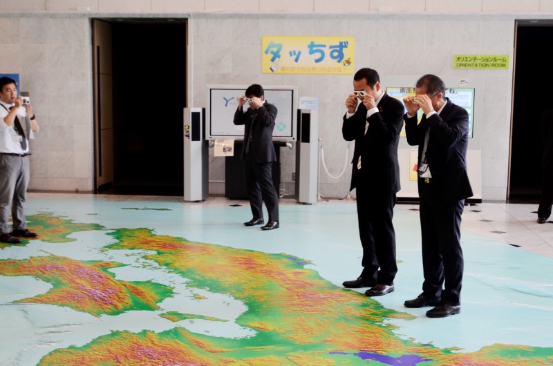 国土地理院を訪問させていただき、測る(日本の位置を定める)、描く(国土の地図を作る)、守る(頻発する災害への対応)、地理空間情報の活用・推進のための取組について説明をいただきました。