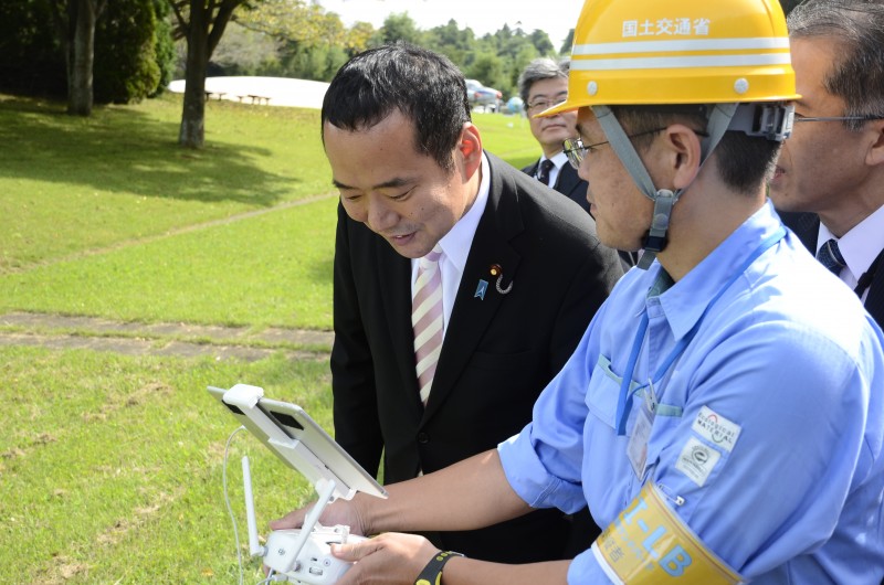 無人航空機(UAV)いわゆるドローンによる測量は、平成27年関東・東北豪雨、今年、平成28年4月の熊本地震において、応急対応に必要な緊急撮影、被災情報調査に役に立ちました。