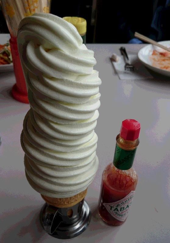 10段巻き25cmソフトクリーム(180円。ボリュームたっぷり)、ナポリかつをいただきました。