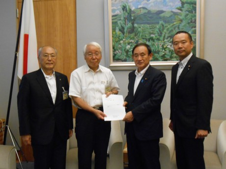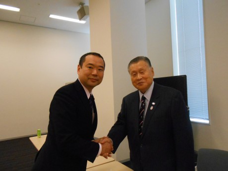 関西招致に当たっては、平成25年9月17日に、井戸敏三関西連合長(兵庫県知事)、秋山喜久関西広域機構会長(当時。元関西経済連合会会長)とともに、首相官邸にて、菅官房長官に、政府を挙げての招致活動へのご協力をお願いさせていただきました。さらに、当日、井戸敏三関西連合長とともに、森喜朗元総理に、招致活動へのご協力をお願いさせていただきました。