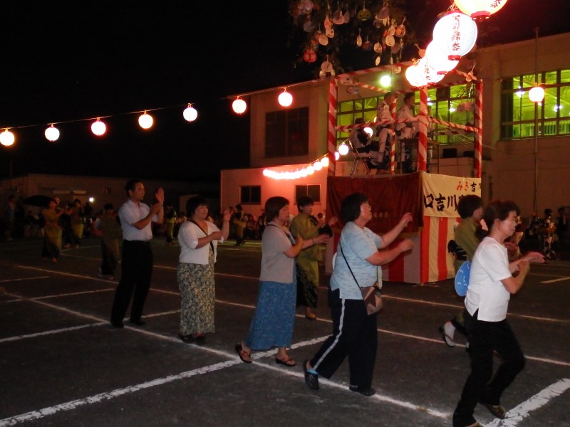 8月1日(土) 第44回口吉川町民盆踊り大会に参加させていただきました。 口吉川小学校の皆さんのソーランが披露されました。 まるいお月様も上がって、いよいよ盆踊りも佳境です。 三木吉川音頭保存会の皆様による、語り口調が独特の播州音頭など、伝統の盆踊りが行われました。 町民盆踊り大会を通じて、伝統文化の継承と、口吉川町の皆様の益々の親睦と交流、ご発展を心より祈念申し上げます。